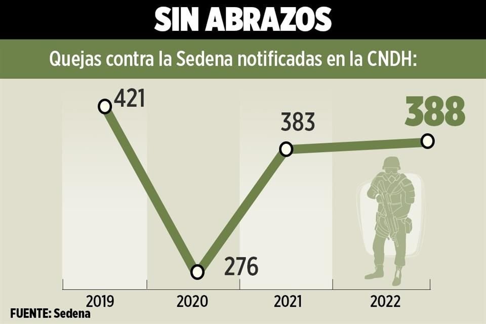 En 2021, una vez que pasó el peor año de la contingencia sanitaria, las quejas contra el Ejército volvieron a incrementarse en un 38 por ciento al pasar de 276 a 383, mientras que 2022 cerró con 388 reportes.
