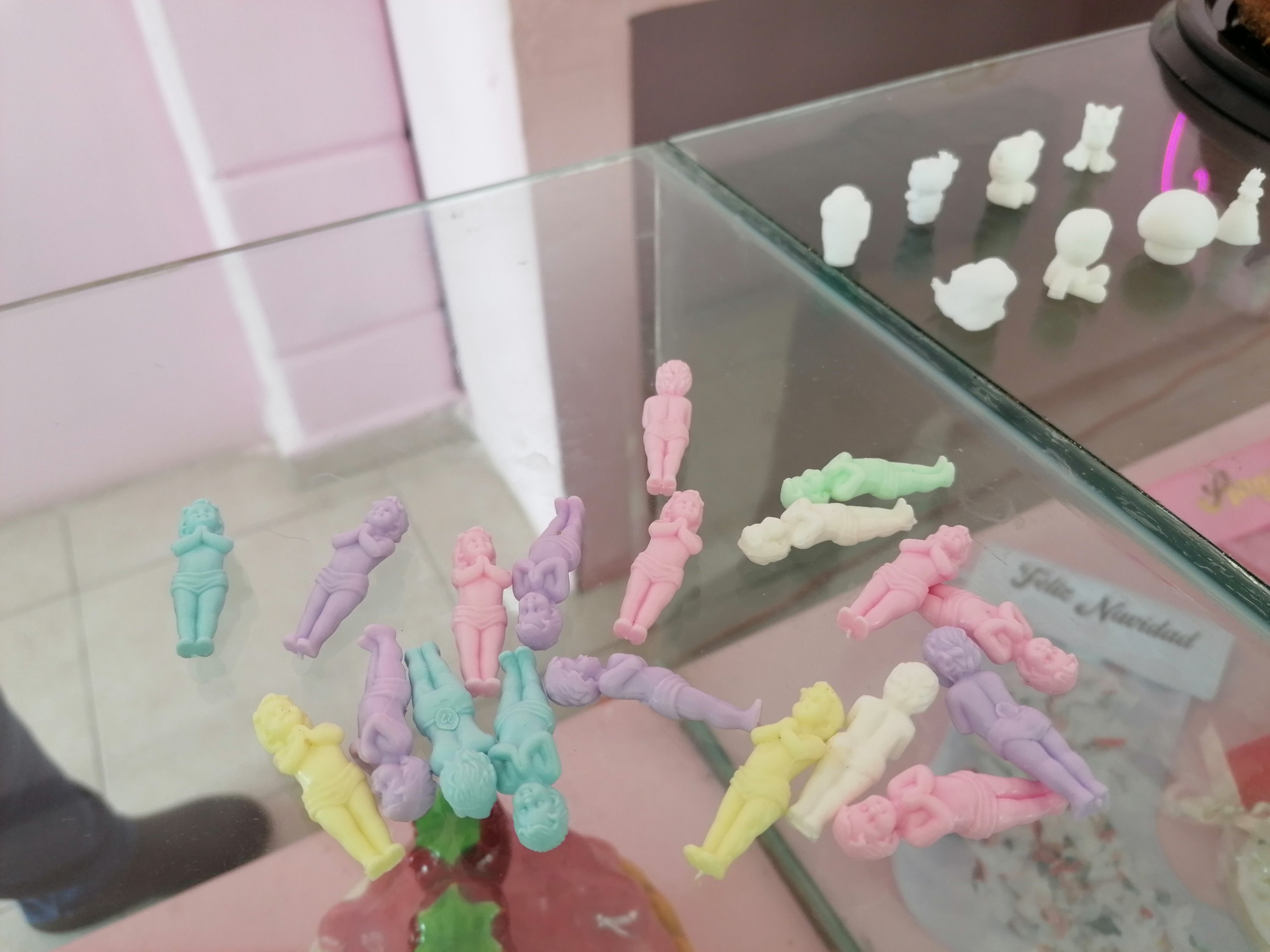 Llevan los muñecos de varios colores así como las figuras de spiderman, Mario Bros, Kitty, unicornio, conejo turín y Among Us.