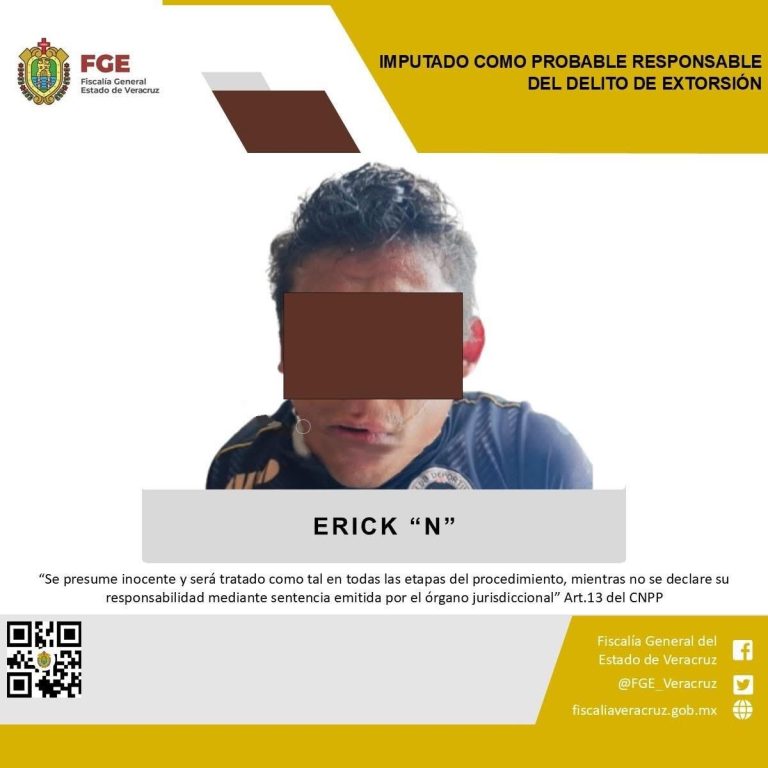 La Fiscalía Regional Coatzacoalcos realizó imputación en contra de Erick “N” como probable responsable del delito de extorsión en agravio de la víctima identificada con las iniciales A.J.M.P.