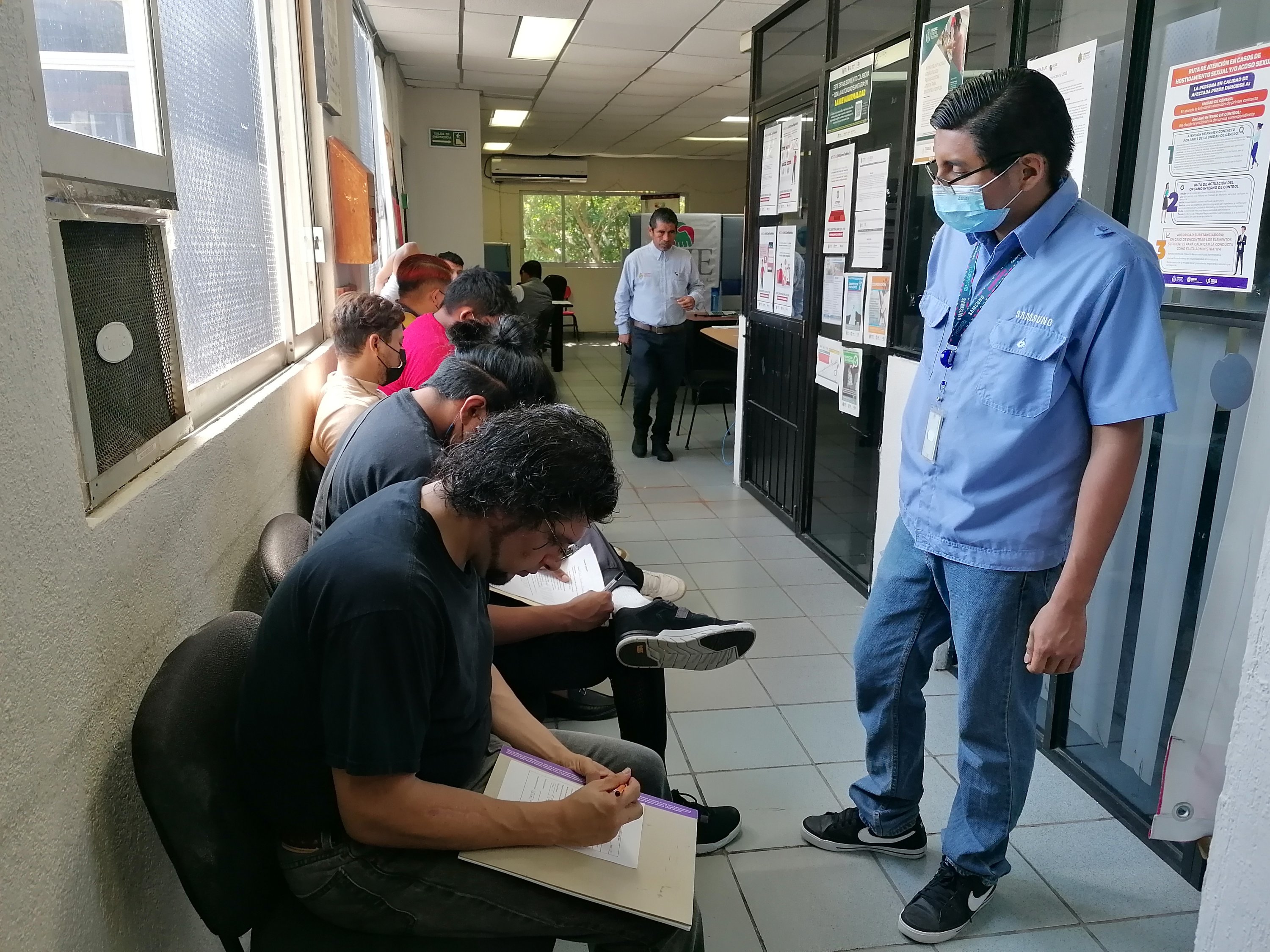Desde temprana hora, en su mayoría hombres llegaron a las oficinas del SEE con solicitud de trabajo en mano, se les aplicó examen de conocimiento y de antidoping.