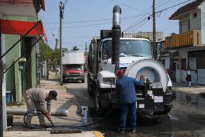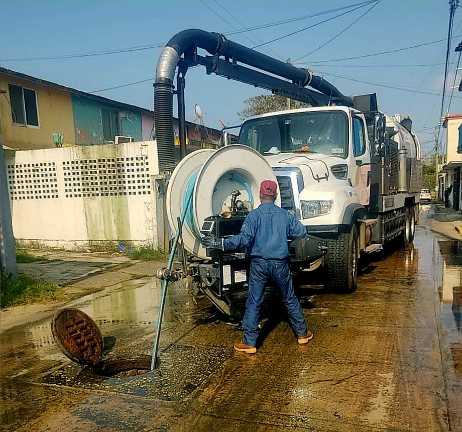 Con el respaldo del Gobierno del Estado, se utilizan unidades tipo Vactor para la limpieza profunda de la red sanitaria, retirando sedimentos, basura y obstrucciones que impiden el correcto flujo de las aguas residuales.