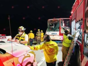 Un autobús de pasajeros que salió de Coatzacoalcos con destino a Ciudad Acuña, Coahuila, se accidentó, dejando un saldo preliminar de dos personas falle3cidas y varios lesionados.