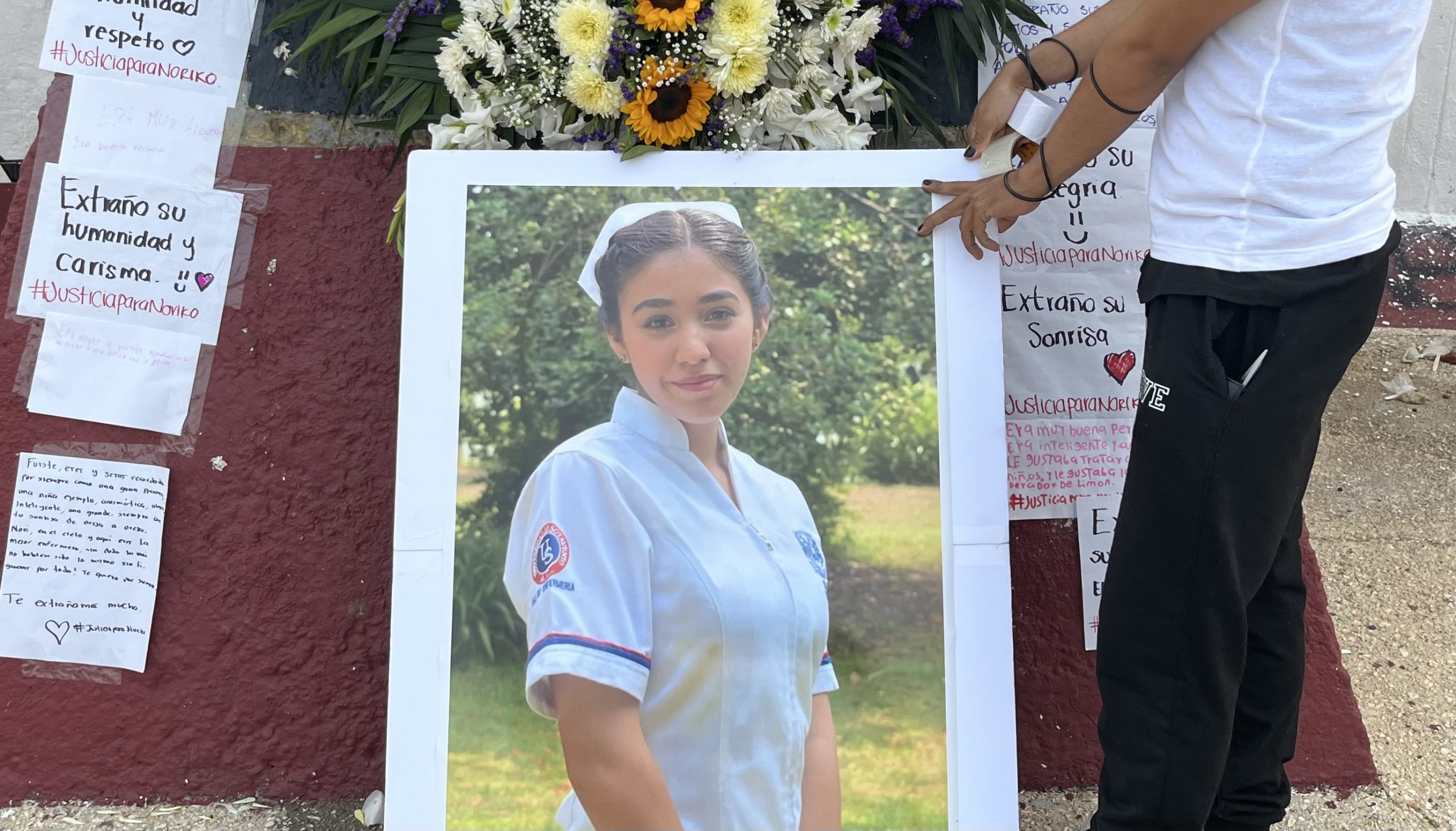 Hermanos, amigos y conocidos de Noriko, la recordaron y rindieron un homenaje en el hemiciclo a los niños héroes en donde portaban cartulinas con mensajes amorosos, flores, globos blancos, fotografías y playeras con la imagen de la joven.