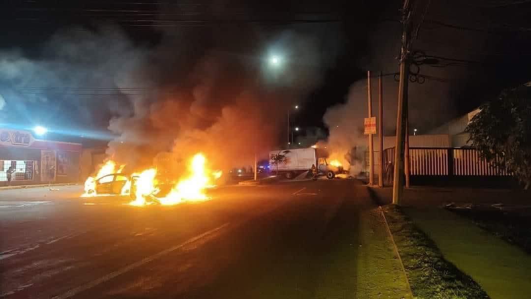 La quema de autos se dio en la periferia de la ciudad y en algunas carreteras estatales.