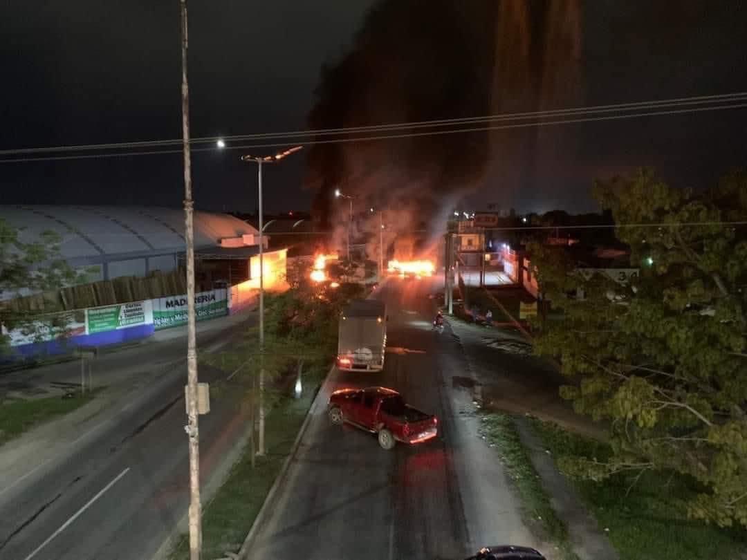 En Tabasco, al menos 20 vehículos fueron incendiados en la carretera Villahermosa-Cárdenas, Paraíso-Comalcalco, Villahermosa-Frontera con dirección al municipio de Nacajuca