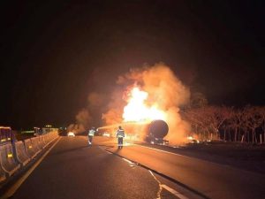 La madrugada de este martes un tráiler cargado con gasolina se incendió a la altura de la comunidad de La Cerquilla en San Juan Evangelista.