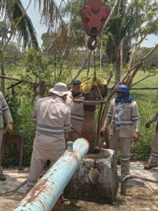 Luego de realizar las labores pertinentes para la detección de la falla, personal especializado inició la sustitución del equipo de bombeo, el cual ya presentaba un alto grado de obsolescencia tras haber cumplido su ciclo de vida útil. Estas acciones son fundamentales para garantizar un funcionamiento eficiente y continuo del sistema.