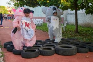 Un total de 16 participantes disfrazados de una variedad de personajes, compitieron en un circuito con retos que arrancó risas y aplausos de la multitud. El objetivo fue recaudar material escolar para garantizar un digno regreso a clases para alrededor de 50 estudiantes de colonias vulnerables. También recibieron despensas.