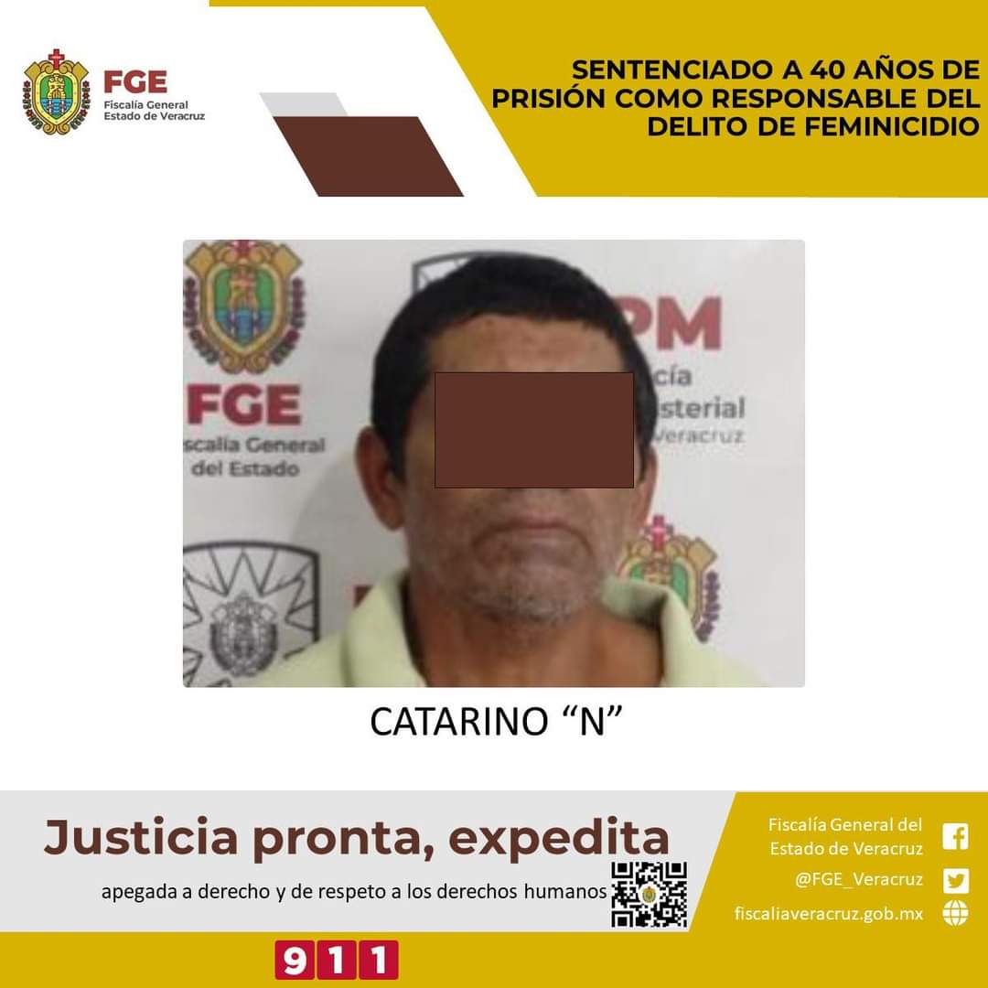 La Fiscalía Especializada en Delitos de Violencia Contra la Familia, Mujeres, Niñas y Niños y Trata de Personas logró sentencia condenatoria de 40 años de prisión en contra de Catarino “N” como responsable del delito de feminicidio en agravio de la víctima identificada con las iniciales J.M.P.