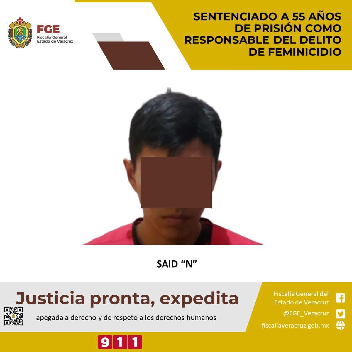 La Fiscalía Especializada en Investigación de Delitos de Violencia Contra la Familia, Mujeres, Niñas y Niños y de Trata de personas logró sentencia condenatoria de 55 años de prisión en contra de Said “N” como responsable del delito de feminicidio cometido en agravio de la víctima M.S.A., hechos suscitados el 27 de junio del 2021 en el río La Mora que se ubica en la Localidad de Ahuateno de este municipio.