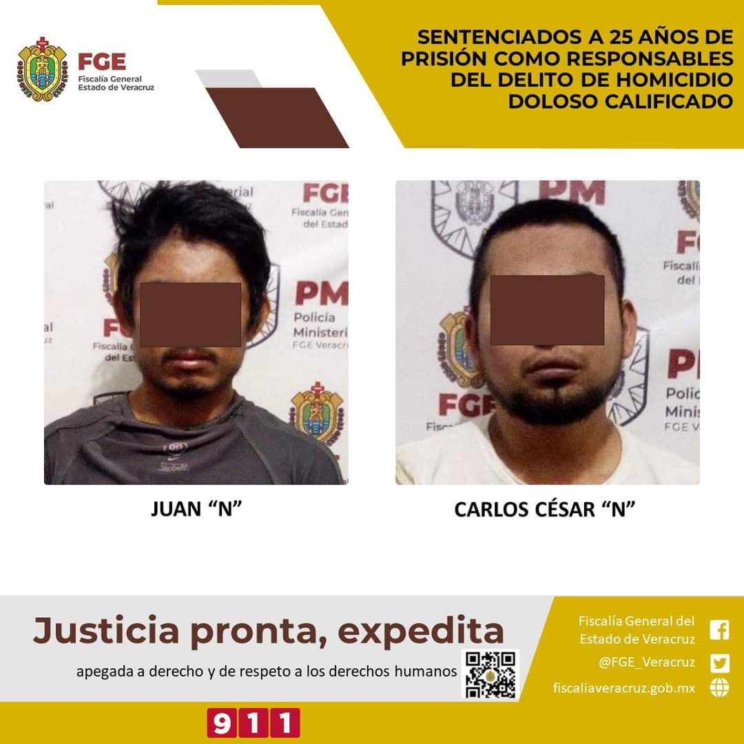 La Fiscalía Regional Coatzacoalcos logró sentencia condenatoria de 25 años de prisión en contra de Carlos César “N” y Juan “N” como responsables del delito de homicidio doloso calificado en agravio de la víctima identificada con las iniciales R.J.G.C.