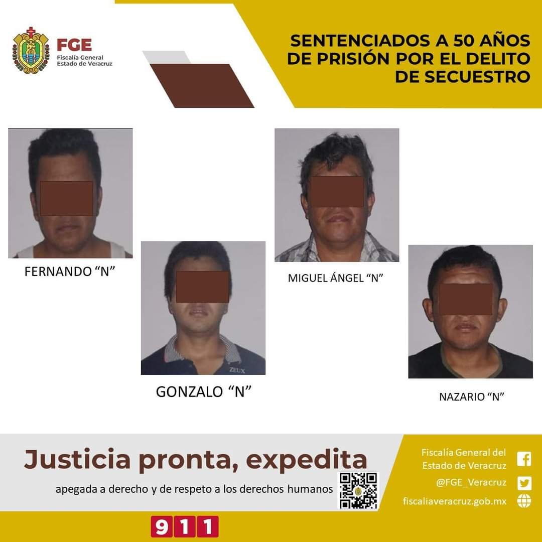 La Unidad Especializada en Combate al Secuestro logró sentencia condenatoria de 50 años de prisión en contra de Fernando “N”, Nazario “N”, Gonzalo “N” y Miguel Ángel “N” como responsables del delito de secuestro en agravio de la víctima identificada con las iniciales J.J.N.R.