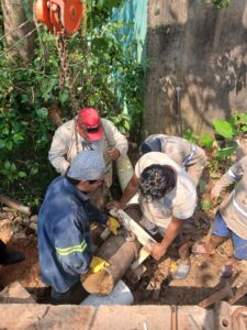 Luego de varios días de intensas labores por parte del personal operativo de la Comisión Municipal de Agua Potable y Saneamiento (CMAS), se ha concluido con éxito la reparación de la línea de 10 pulgadas del Pozo 15, ubicado en la zona de Canticas.