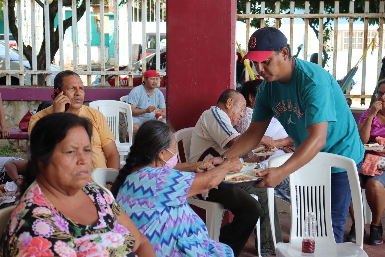 Acompañada de su cuerpo directivo la presidenta del organismo señora Esther Mortera Zetina, supervisó personalmente la entrega de 640 raciones de desayunos, así como un número similar de comidas y cenas durante este día, para las personas que llegaron en busca de un sitio seguro donde refugiarse y que superaron las 600 en su momento más álgido.