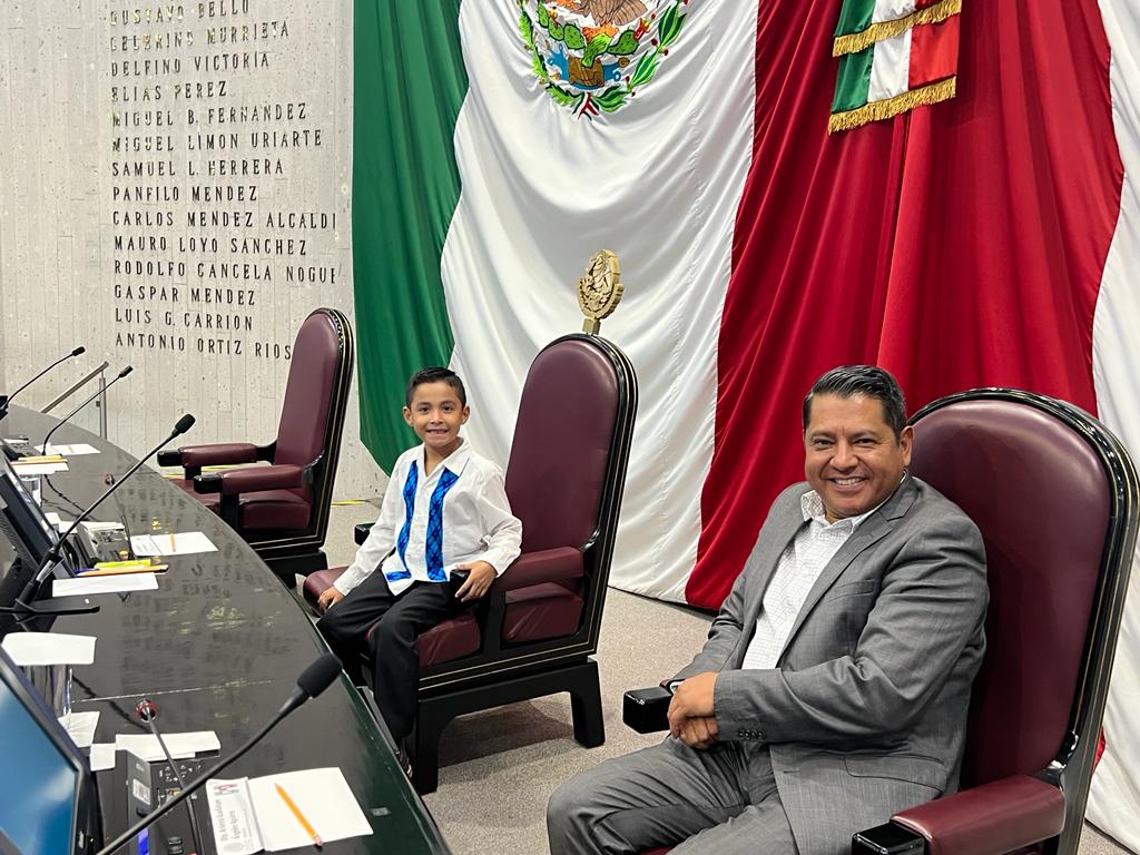 Thiago obtuvo el primer lugar en el concurso “diputado por un día”, convocado por el legislador Luis Arturo Santiago Martínez, quien el pasado mes de abril lanzó la convocatoria por el día del niño.