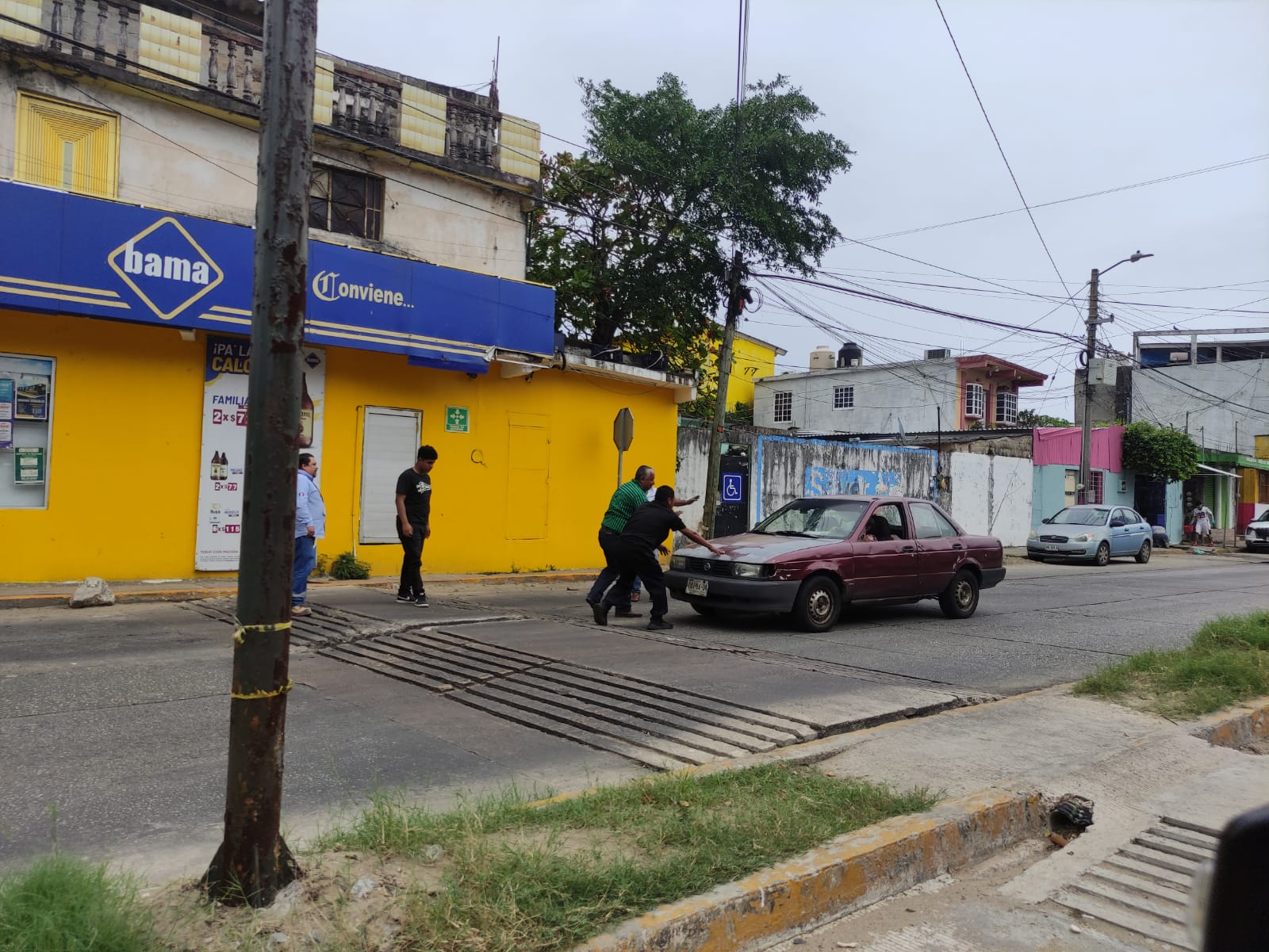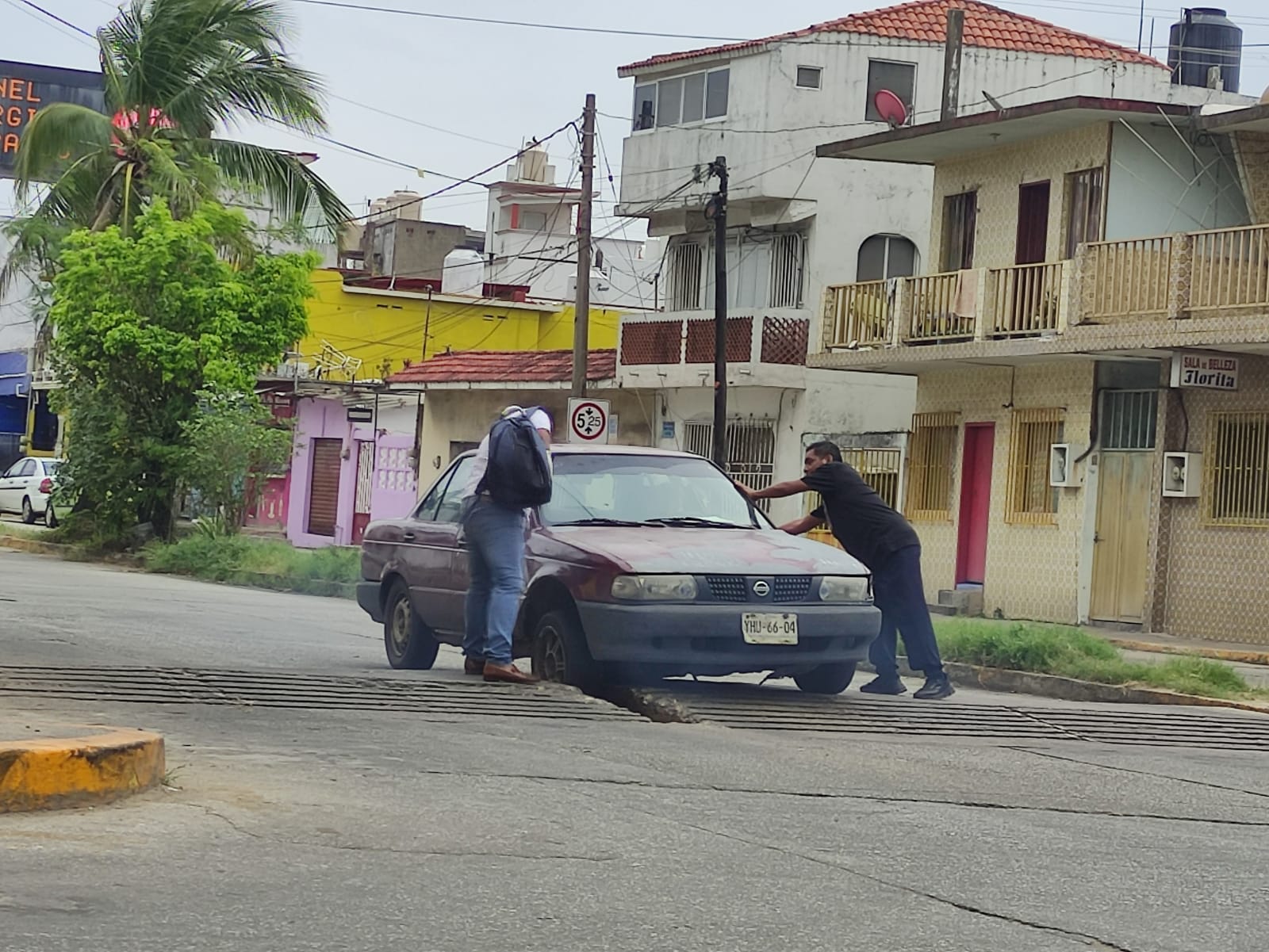 Hace unos días, un Tsuru color guinda quedó “atrapado” por lo que varias personas tuvieron que ayudar al conductor a remontarlo.