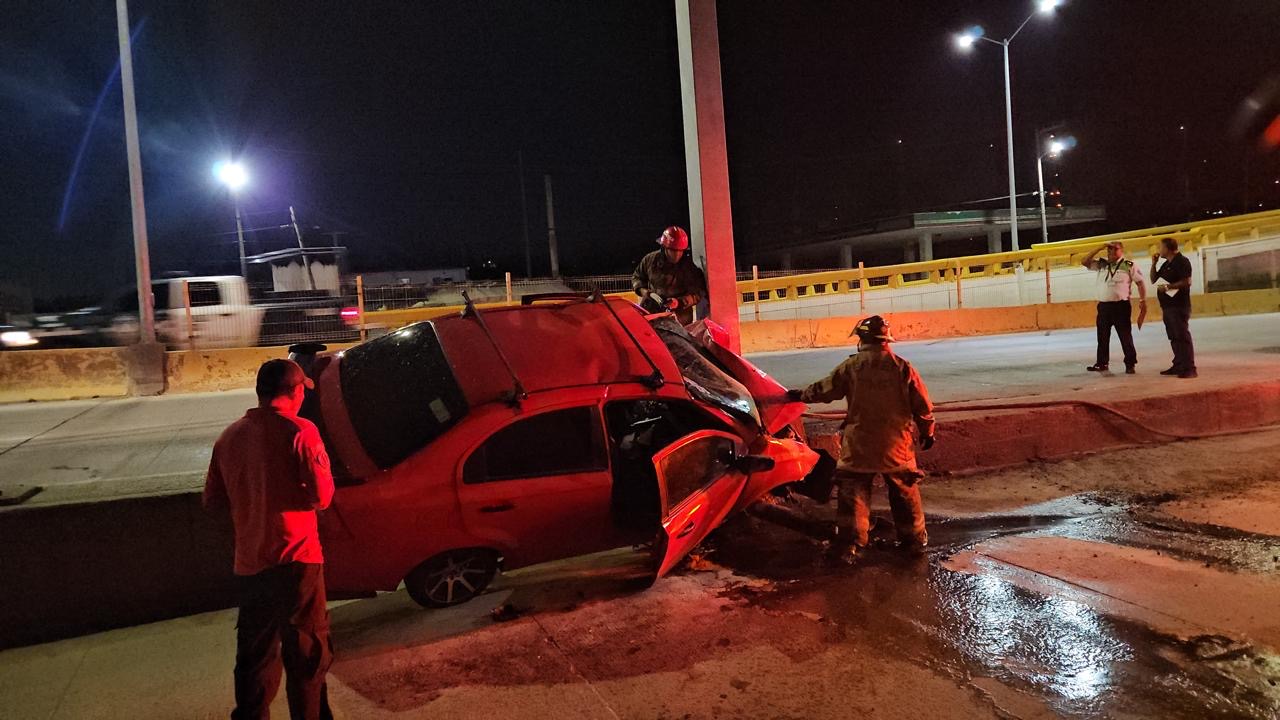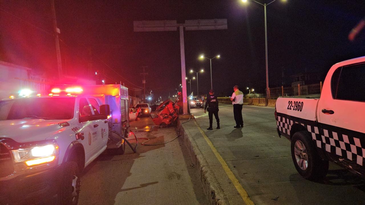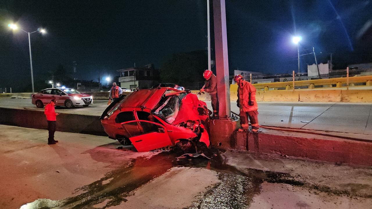 El accidente sucedió cuando el automóvil transitaba de sur a norte sobre la carretera Transístmica, pero al ir bajando del puente Joroba, con dirección al centro y antes de llegar al distribuidor vial, su conductor perdió el control de la dirección y chocó contra la base de la señalética.