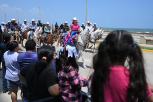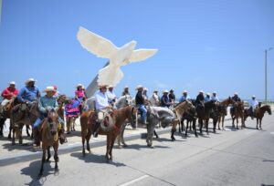 Desde temprana hora, jinetes y caballos comenzaron a reunirse en la Expo Ganadera para dar inicio al recorrido que, alrededor de las 10 de la mañana, partió rumbo al Malecón, avanzando por la playa hasta la emblemática Paloma de la Paz y regresando al punto de origen.