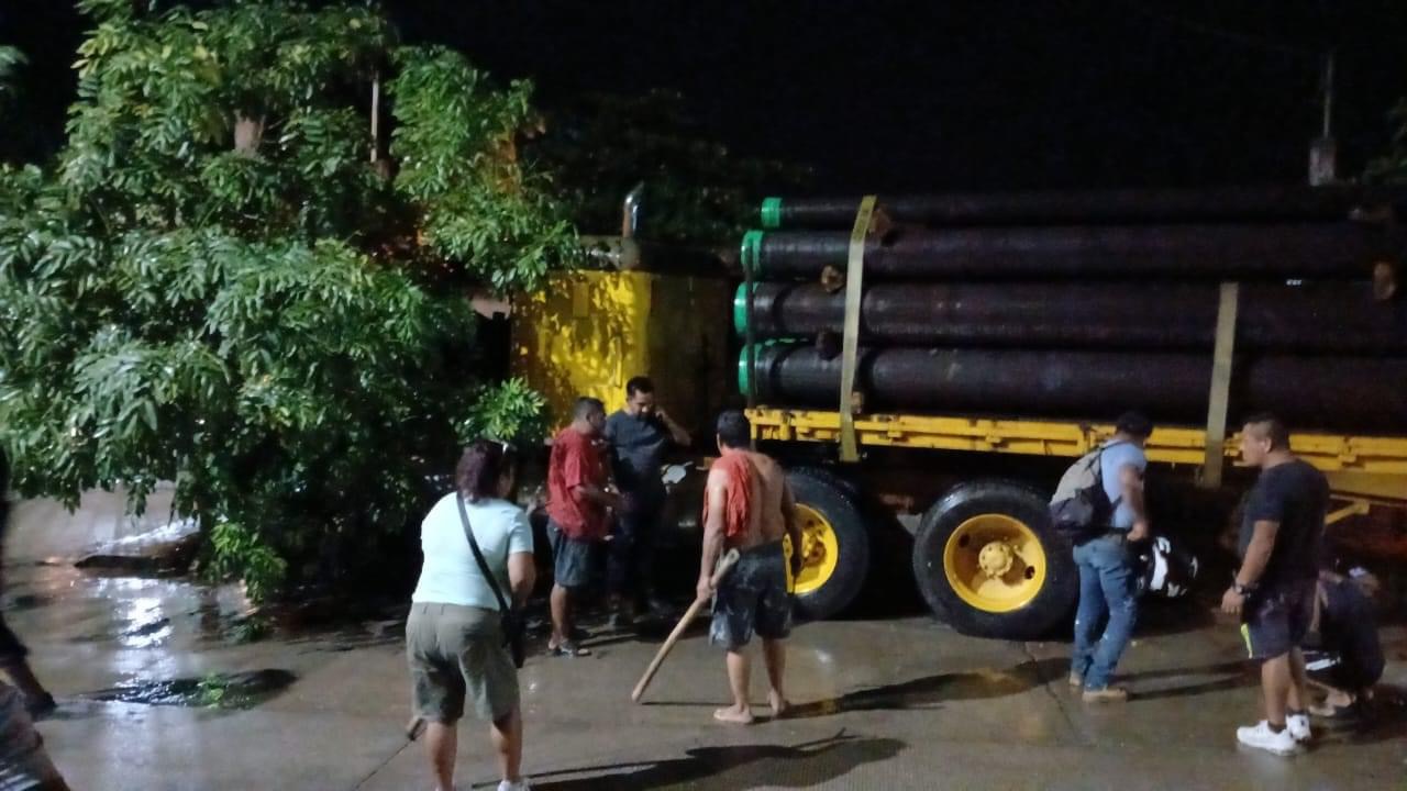 En la colisión participó un tráiler que transportaba tubería, y colisionó contra una camioneta negra.