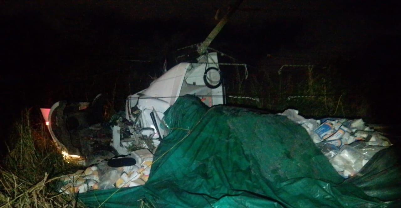 Al sitio acudieron autoridades de la Guardia Nacional división carreteras quienes resguardaron la zona, pues el cemento y pega azulejo quedó esparcido, además del daño del poste de energía, que quedó casi en el suelo.