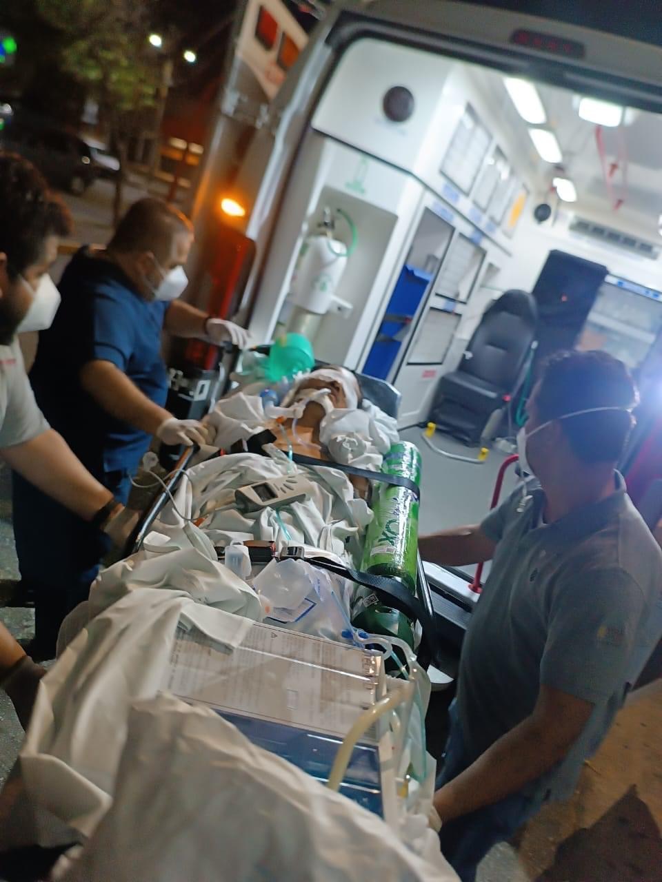 Luego de ser atendido en el Hospital Regional Comunitario de este Puerto y ante la falta de especialistas en este nosocomio, el paciente fue trasladado de emergencia al Puerto de Veracruz, pues presenta un traumatismo de cráneo severo y está en estado de coma.