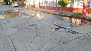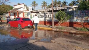 El estancamiento del líquido no solo representa una pérdida del recurso vital, sino que ha convertido la vialidad en un foco de infección y un peligro para los peatones debido a la acumulación de limo. Al respecto, Miguel Israel Barredo Archi, director del plantel educativo, expresó su preocupación por la seguridad de los alumnos y transeúntes.