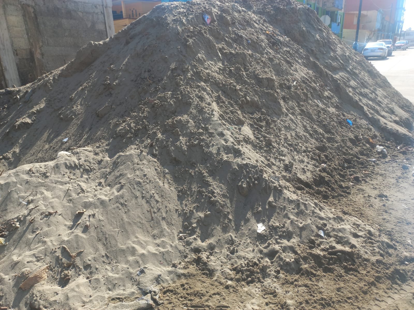 Desde hace más de una semana que pasó el Norte a causa del Frente Frío número 33, hay toneladas de arena almacenadas en la calle Altamirano de la colonia Playa Sol en Coatzacoalcos.