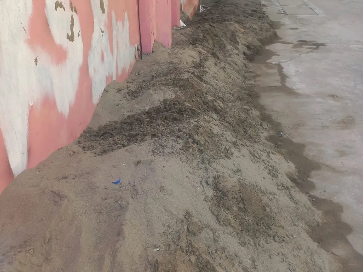 Hay cúmulos de arena hasta en los andadores, algunos residentes tienen que pagar para que particulares levanten la arena que trajo el viento de la playa.