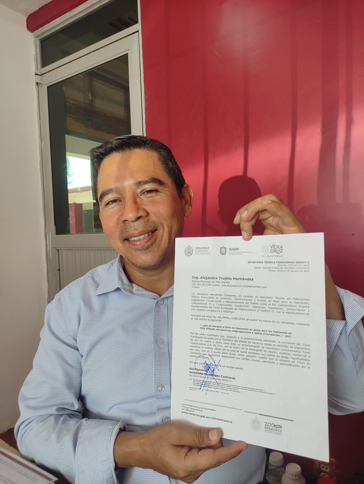 El agente municipal de Villa Allende, Alejandro Trujillo Hernández, comentó que acudió  a las oficinas de la empresa Impulsora del Desarrollo y el Empleo en América Latina (IDEAL), concesionaria del Túnel Sumergido Coatzacoalcos a llevar la petición de descuento, sin embargo, hasta la fecha no hay respuesta.
