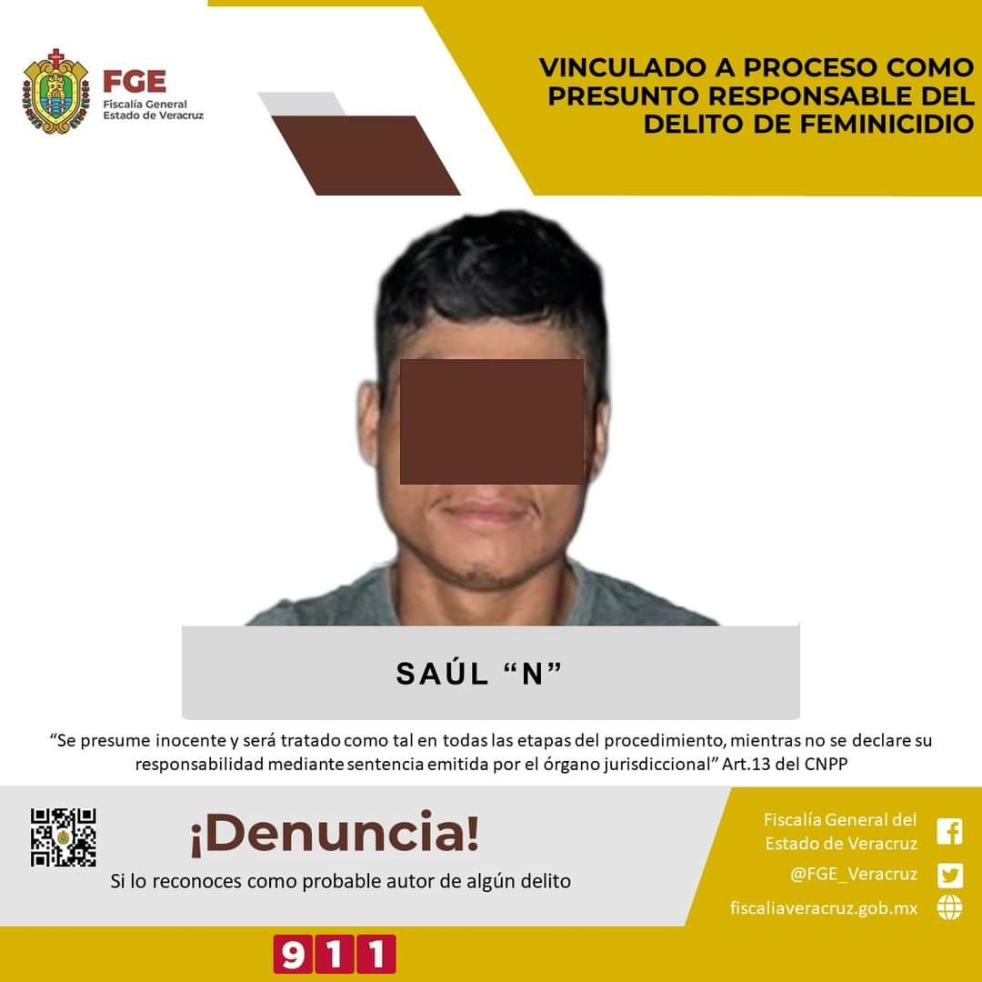 La Fiscalía Especializada en Investigación de Delitos de Violencia Contra la Familia, Mujeres, Niñas y Niños y de Trata de Personas obtuvo vinculación a proceso en contra de Saúl “N” como presunto responsable del delito de feminicidio cometido en agravio de la víctima R.R.M.V.