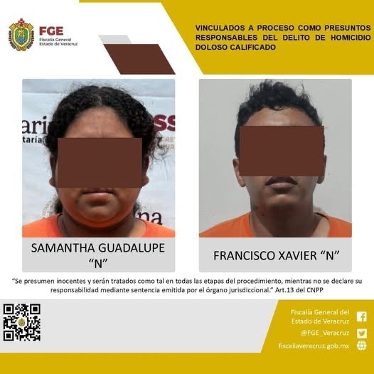 La Fiscalía General del Estado informa que, la Fiscalía Regional Coatzacoalcos obtuvo vinculación a proceso en contra de Samantha Guadalupe “N” y Francisco Xavier “N” como presuntos responsables del delito de homicidio doloso calificado cometido en agravio de la víctima J.A.A.