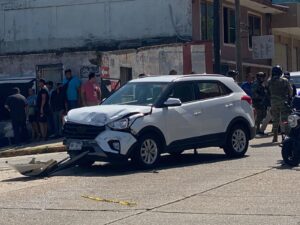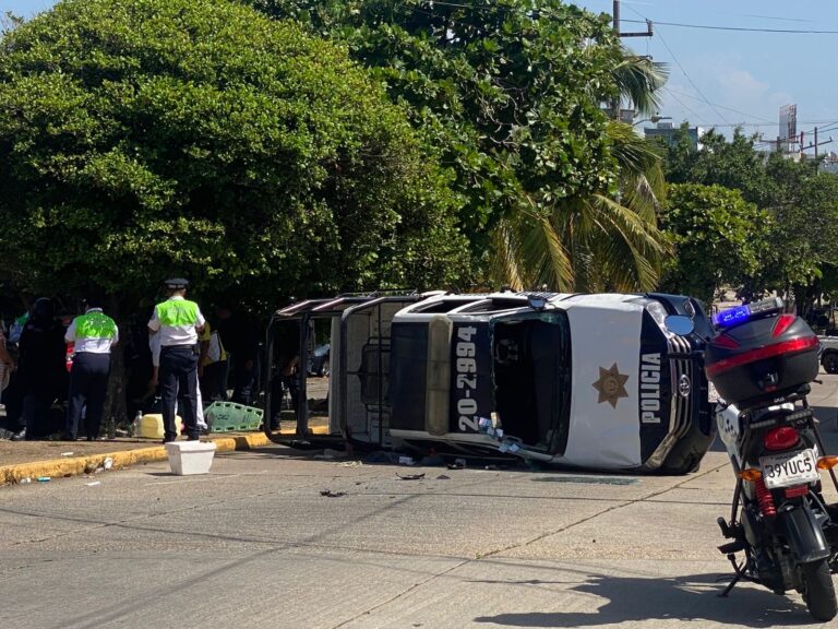 El percance se registró alrededor de las 14:20 horas en la esquina de las calles Melchor Ocampo y Revolución, cuando una patrulla oficial, marca Toyota Hilux, con número económico 20-2994 y placas VE-394-A1, se desplazaba de norte a sur sobre Ocampo.