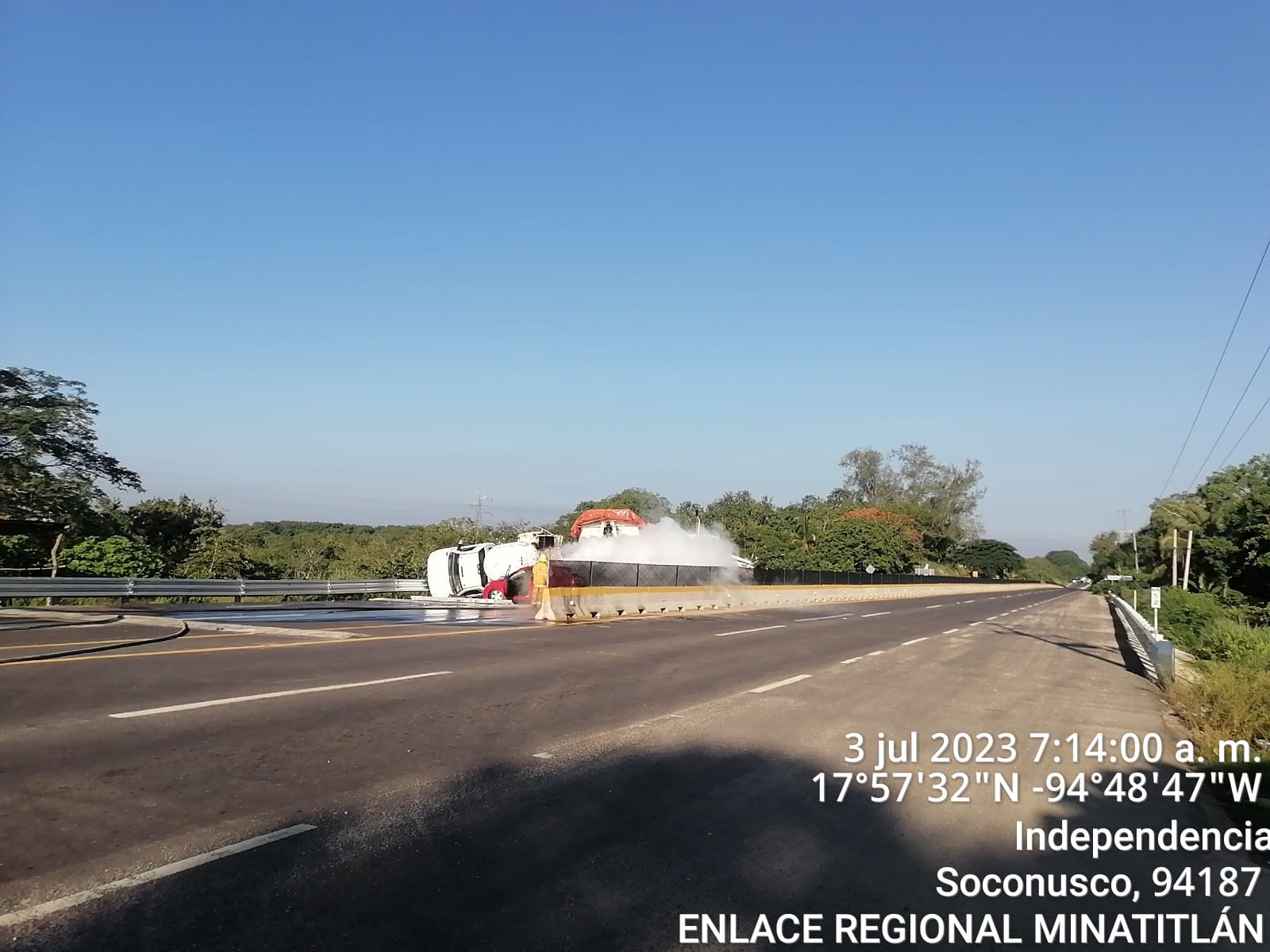 El incidente no representa peligro inmediato a la población pero de manera precautoria se mantiene cerrada la circulación en ambas direcciones en su totalidad, ya que se realizan tareas de desfogue de la pipa.