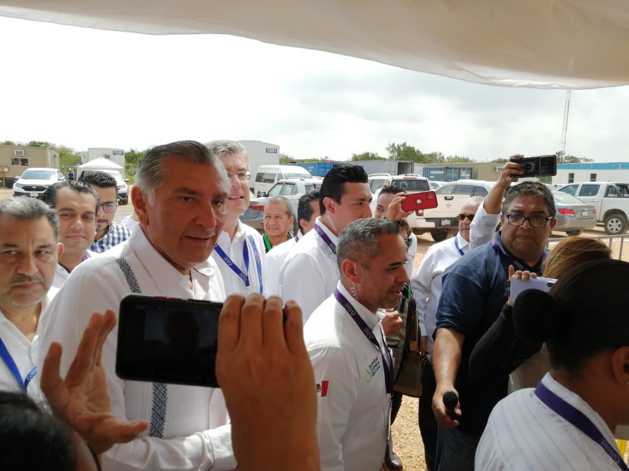 A su llegada saludo afectuosamente al alcalde de Coatzacoalcos, Amado Cruz Malpica, así como también a la diputada Tania Cruz Santos.